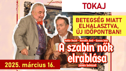 Új időpont – Tokaj 2025. március 16. Kedves Nézőink! Tájékoztatjuk Önöket, hogy a 2025. február 28-ra, Tokajba tervezett „A szabin nők elrablása” című előadásunk betegség miatt ÚJ IDŐPONTRA került. Az…