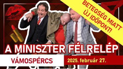 Új időpont – Vámospércs 2025. február 27. (csütörtök) Kedves Nézőink! Tájékoztatjuk Önöket, hogy a 2025. február 20-ra, Vámospércsre tervezett „A miniszter félrelép” című előadásunk betegség miatt ÚJ IDŐPONTRA került. Az…