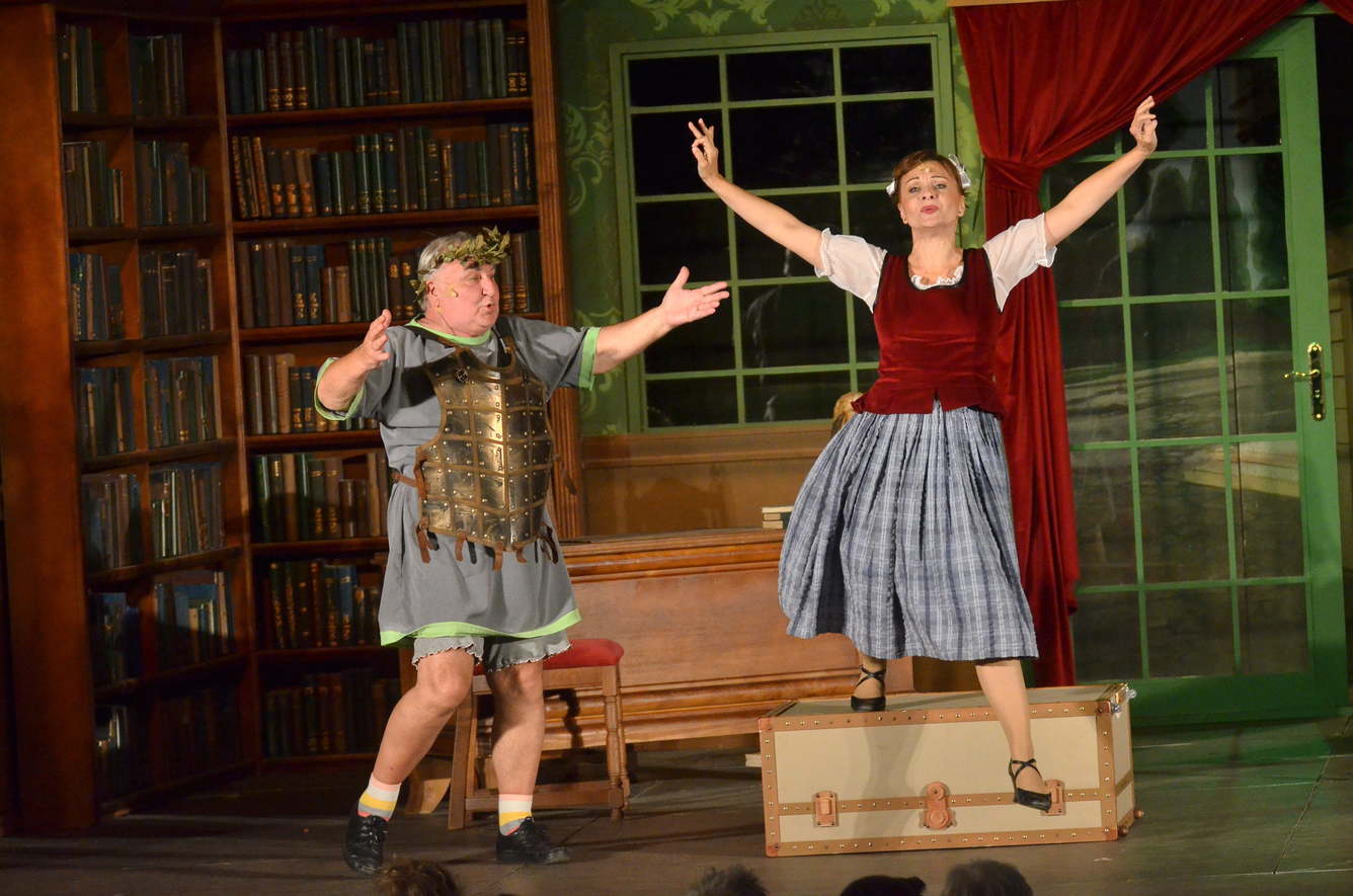A történet elején Bányai Mártont, egy kisváros nagy tiszteletben álló főgimnáziumi tanárát ismerhetjük meg, aki titkon drámaírói ambíciókat dédelget, ám egy ifjúkori zsengéjét eleinte csak Rózának, a szobalánynak meri felolvasni. Élete nagy pillanata akkor jön el, amikor a városkába vándorszíntársulat érkezik. Rettegi Fridolin, a színigazgató ugyanis körbejárja a kisváros előkelőségeit, hogy látogatókat és támogatókat szerezzen pénzügyi nehézségekkel küzdő társulatának, s Bányaiékat is felkeresi, a tanár úr cserfes házvezetőnője pedig elfecsegi, hogy gazdájának van egy ifjúkori színdarabja: „A szabin nők elrablása”. Rettegi a garantált sikerben bízva – hiszen a szerző egy helyi potentát – ráveszi Bányait, hogy társulata színre vigye művét. A próbák és a bemutató pedig alaposan felkavarja a tanár úr családja és egyben a kisváros életét is. A bonyodalmak egyre fokozódnak, váratlanul hazatér nyaralásából a feleség, megérkezik a rég nem látott barát, a közelgő bukást sejtetve a szerző és a színigazgató között is egyre több nézeteltérés támad a darab bemutatásával kapcsolatban.