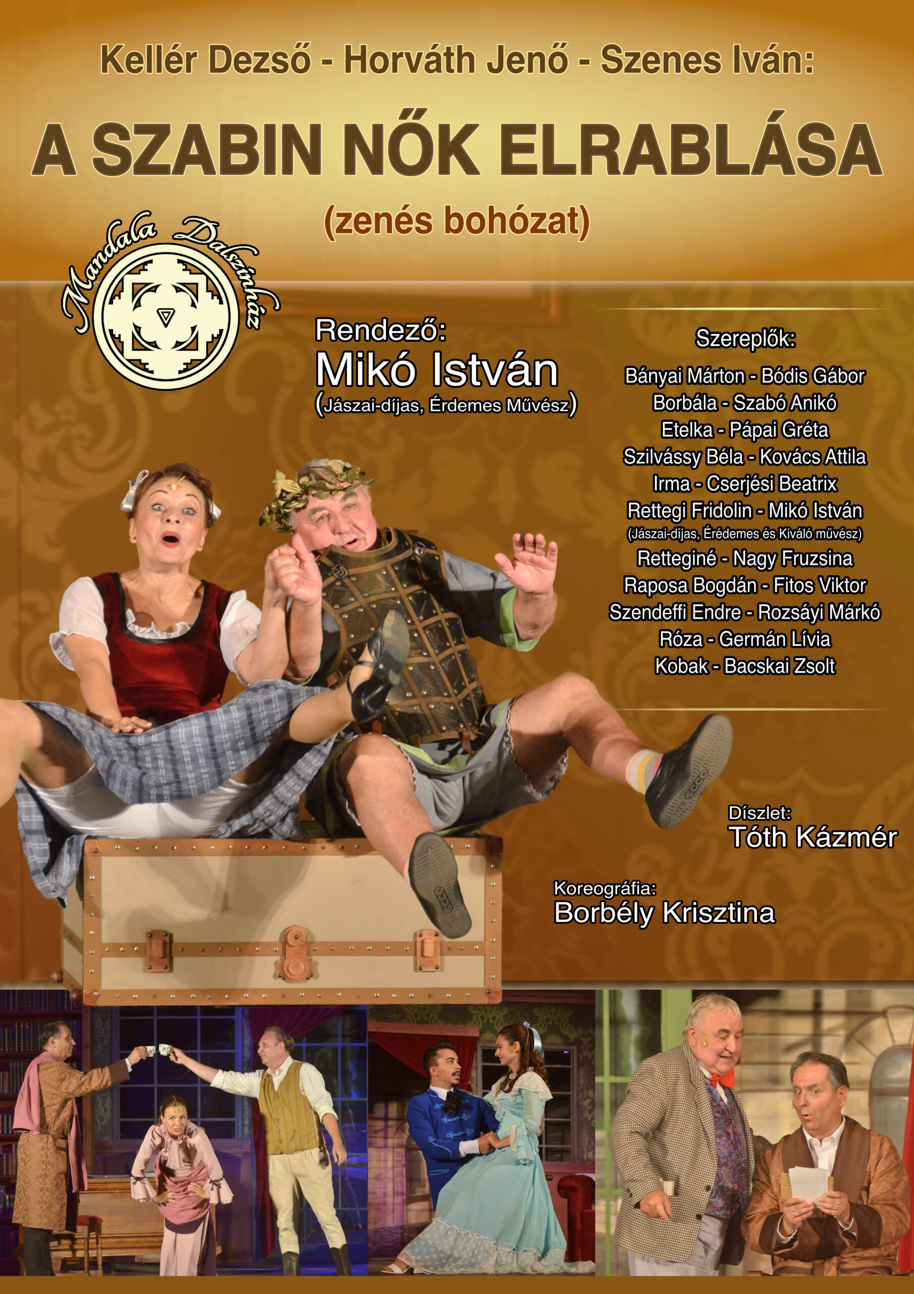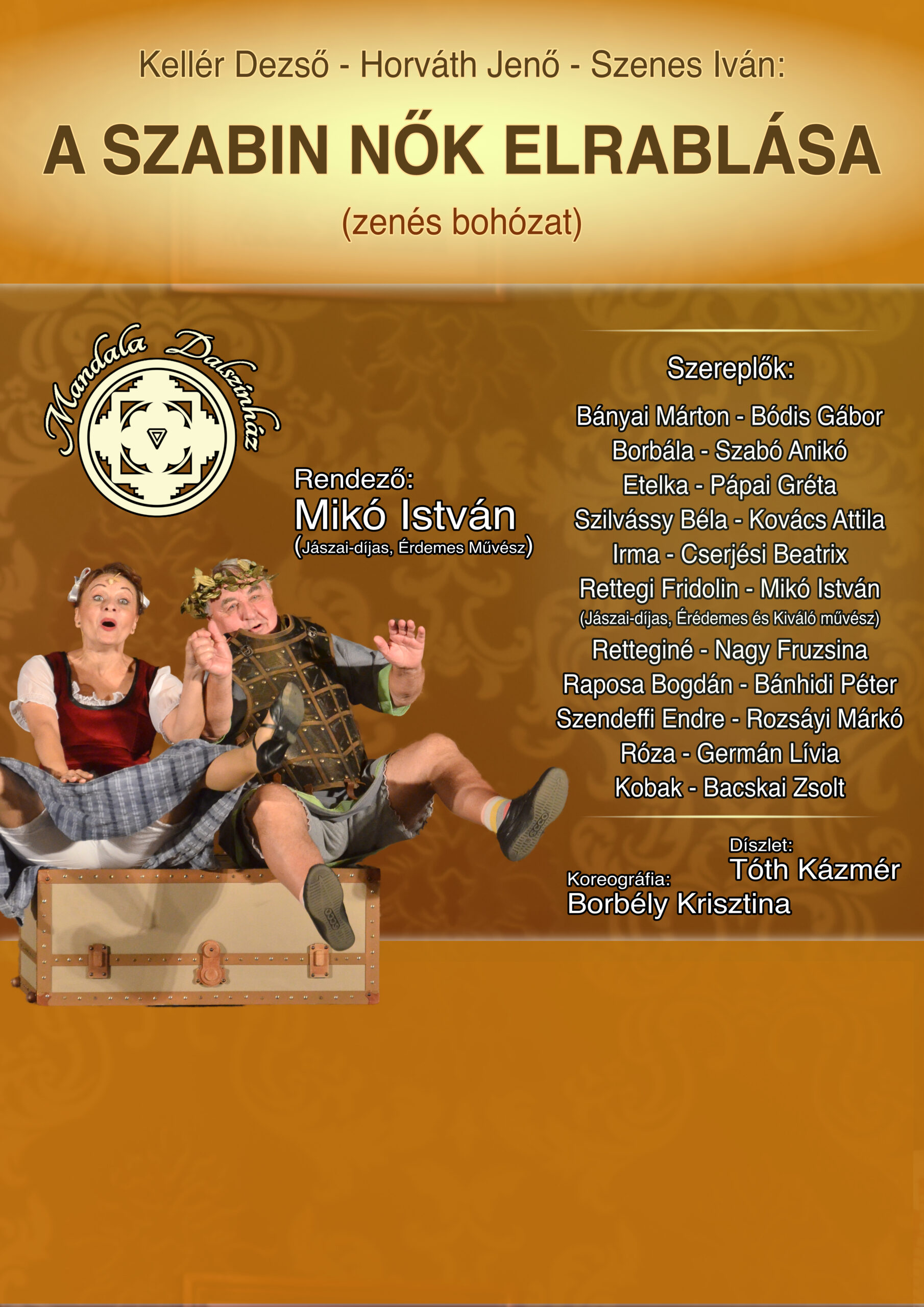„A szabin nők elrablása” olyan darab, mely rólunk, a Mandala Dalszínházról is szól, hiszen társulatunk immár 34. éve utazószínházként járja első sorban az Észak-alföldi Régió és a határon túl magyar kisvárosait, településeit eljuttatva a színházi kultúrát a társadalom azon rétegéhez, amelynek – anyagi és földrajzi korlátok miatt – ritkán, vagy soha nincs lehetősége a kőszínházak előadásait megtekinteni.